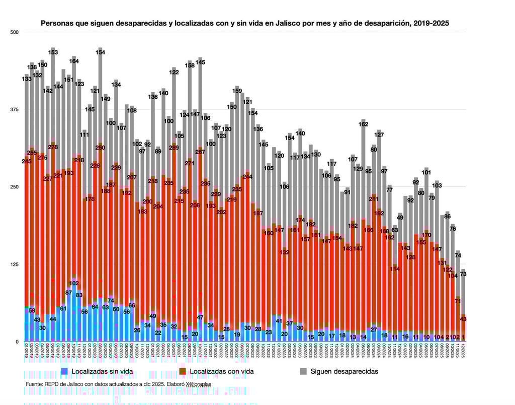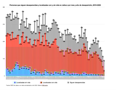 Según los datos oficiales, así se han comportado las denuncias por desaparición de personas en Jalisco desde el 2019 y hasta el 2025: